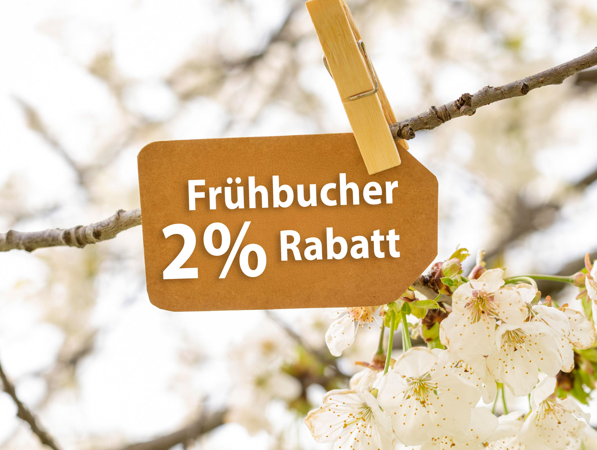 Bei Buchung einer Reise für das Jahr 2026 erhalten Sie bis zum 31.01.2026 einen Frühbucherrabatt von 2 %. Sichern Sie sich frühzeitig Ihren Platz und profitieren Sie von diesem Vorteil.